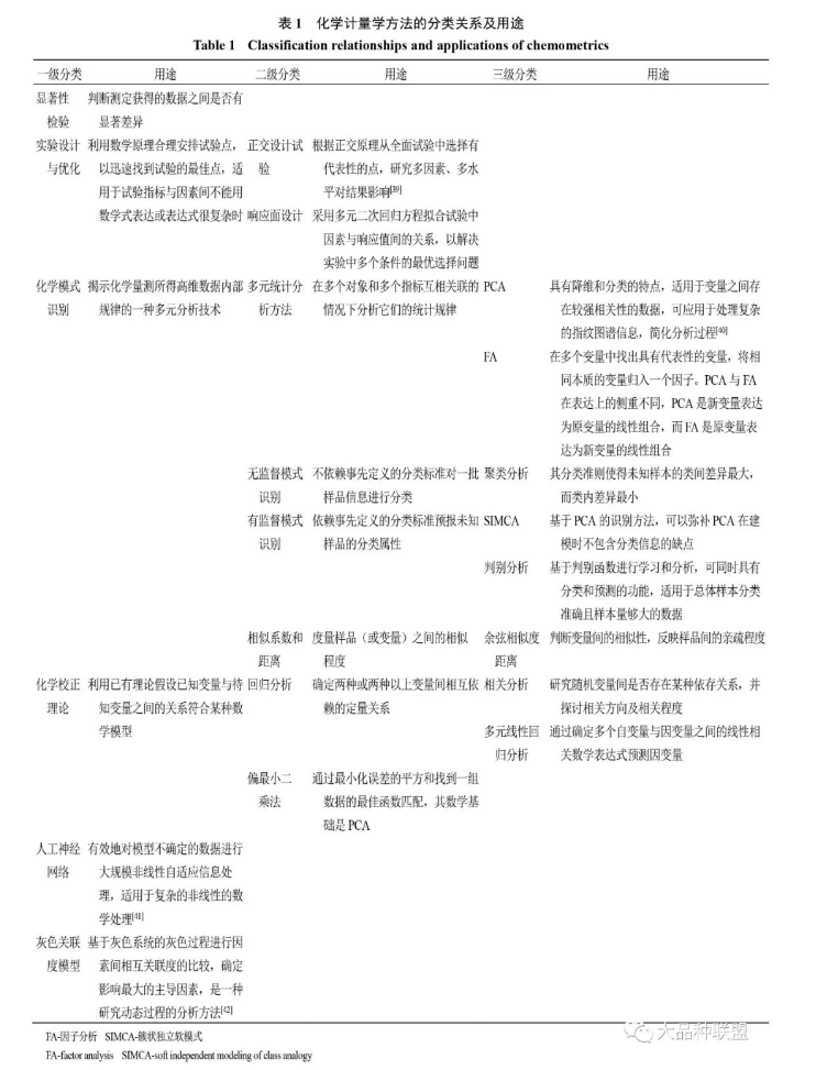 化學計量學在復雜分析中已經(jīng)具有廣泛的應用,是一種處理色譜信息等高維數(shù)據(jù)的強有力的工具和手段,特別適用于中草藥這樣的復雜分析體系,已經(jīng)成功用在包含代謝組學等方向的中藥藥效物質(zhì)基礎研究領域,近年來,化學計量學方法不斷發(fā)展,其在中藥感官評價中的應用前景也更加廣泛。
